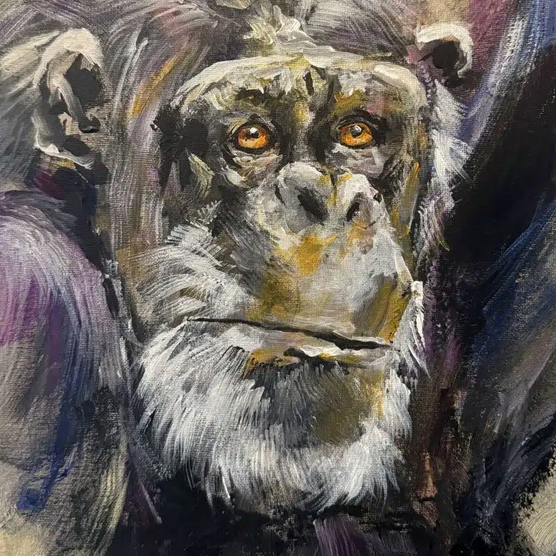 Paint this characterful chimp, we explore brushwork, and colour with acrylic paint.