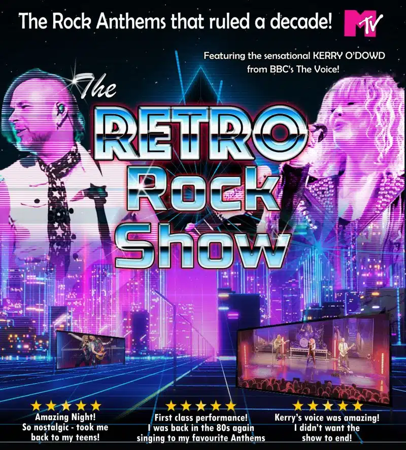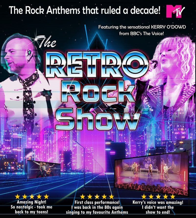Get ready to be transported back in time to when iconic rock anthems ruled MTV and Power ballads graced the airwaves! Critically acclaimed The RETRO Rock Show delivers an experience like no other. With a carefully chosen set list spanning three decades, a band of the most revered musicians on the live music scene, all complimented by the soaring powerhouse vocals of the BBC’s The Voice herself, Kerry O’Dowd.
